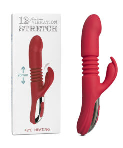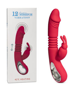12-Speed Red Color Silicone Thrusting Vibrator with Heating Function