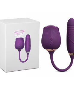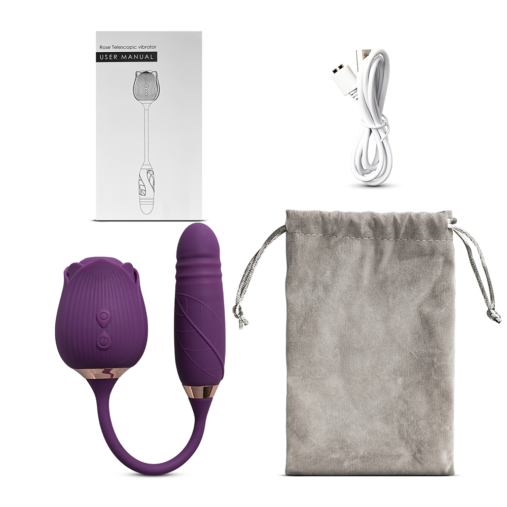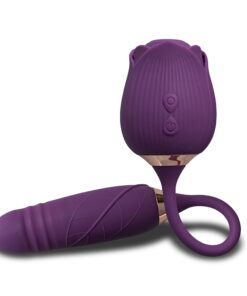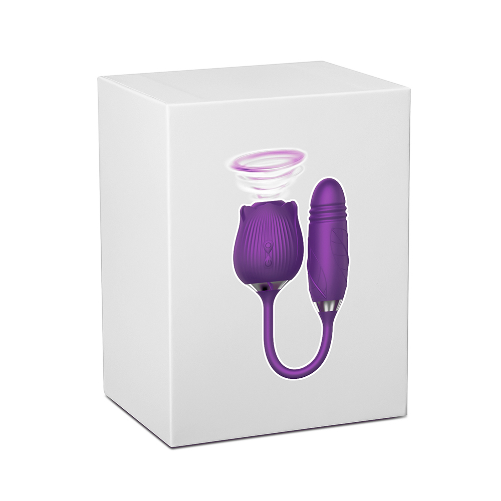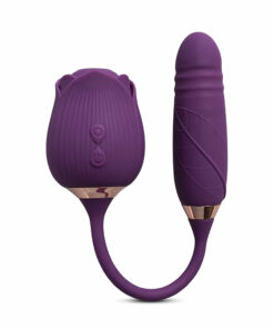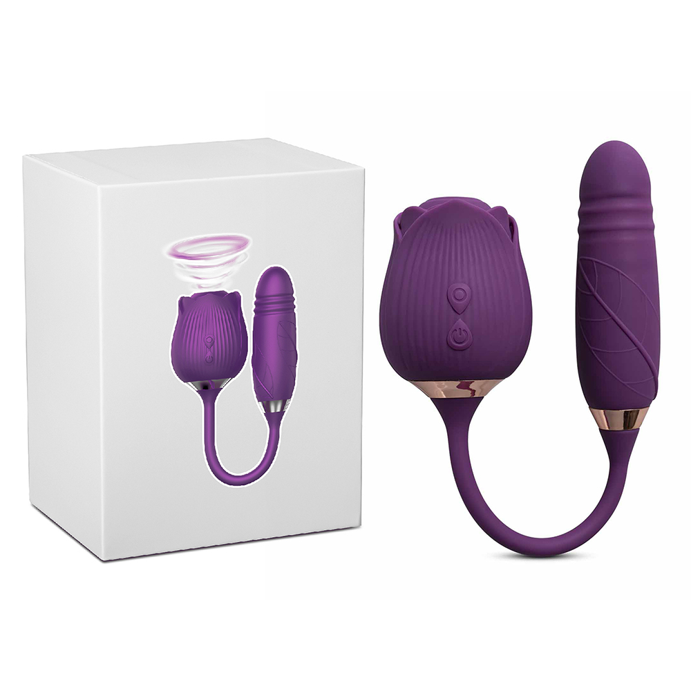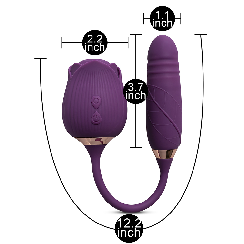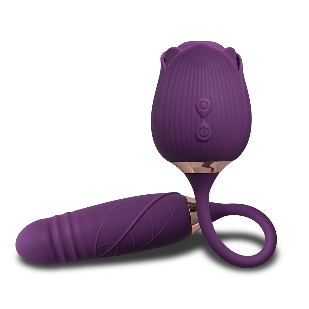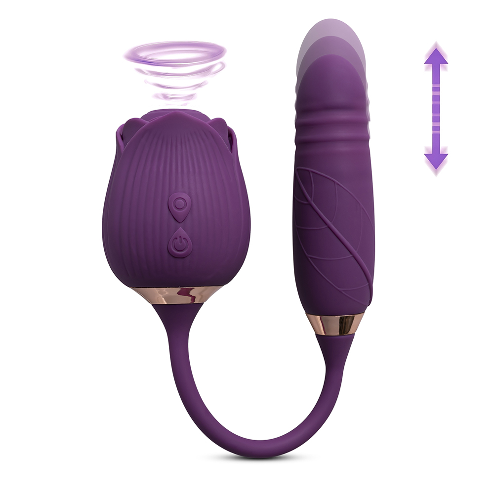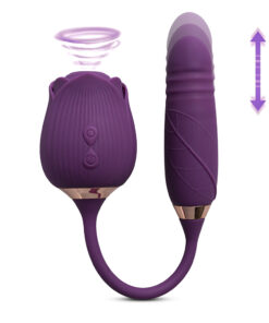 10-Speed Purple Color Silicone Clitoral Sucking Rose with Thrusting Vibrator