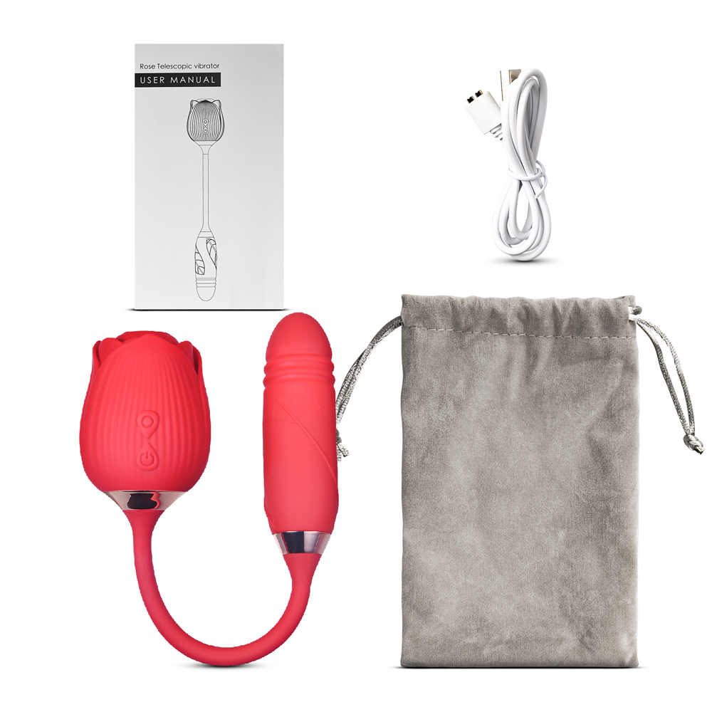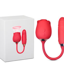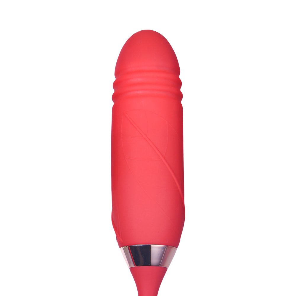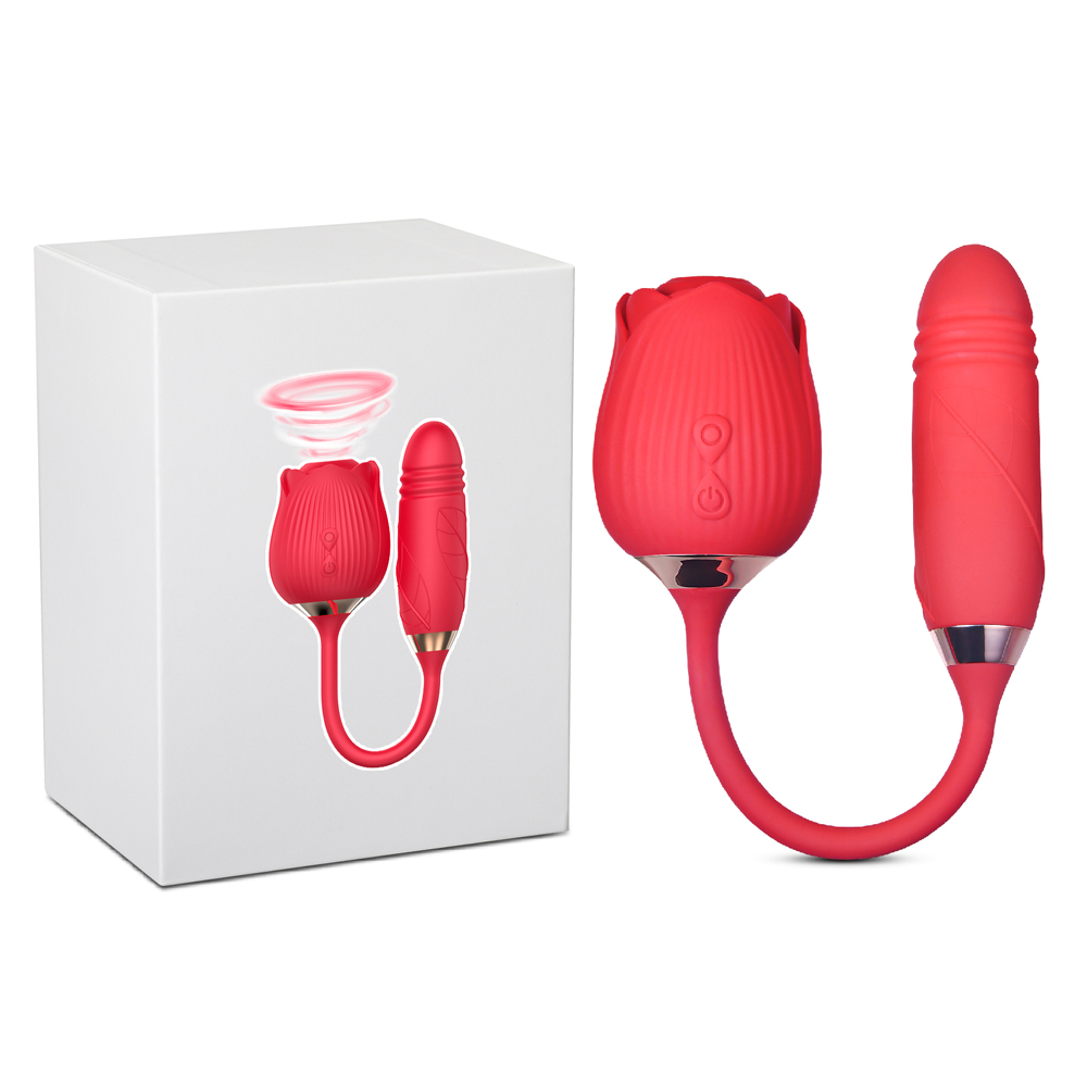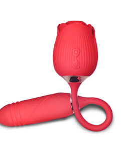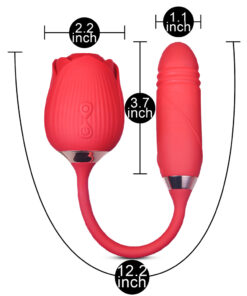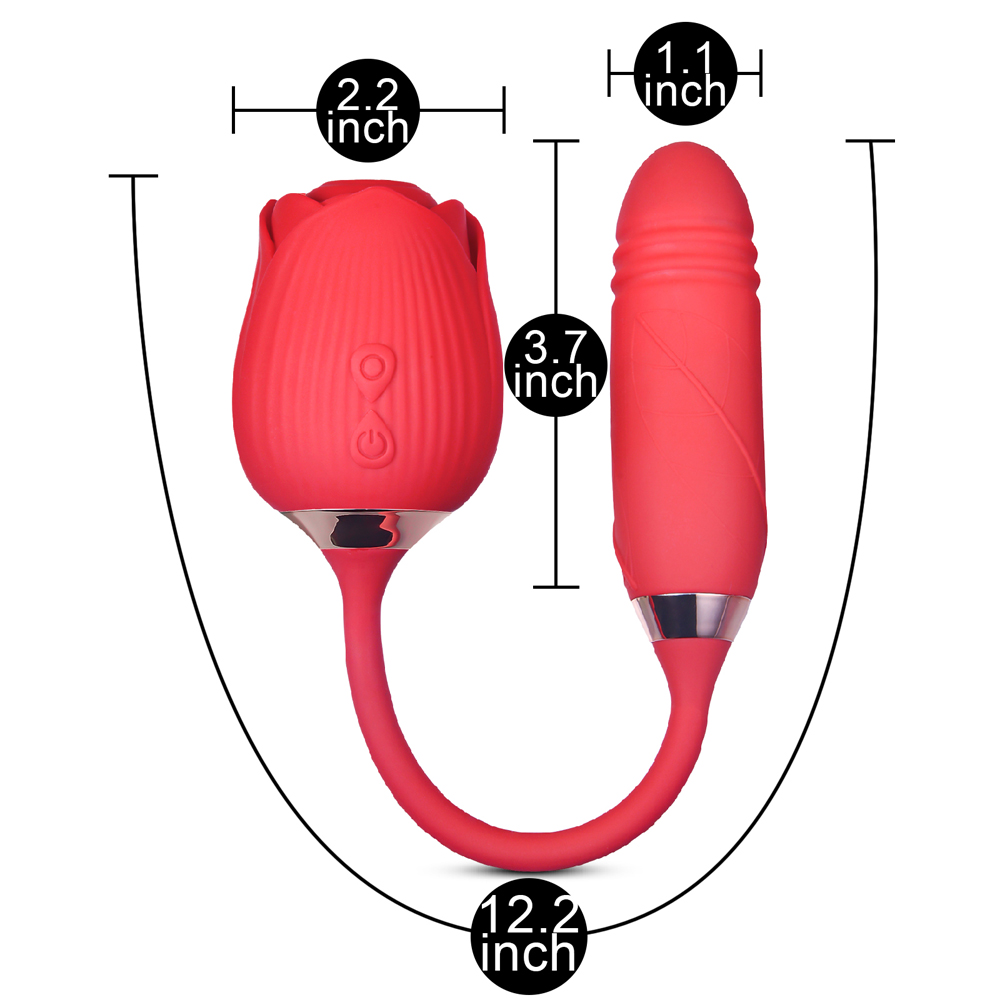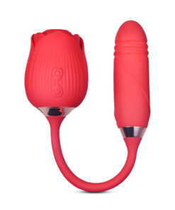 10-Speed Red Color Silicone Clitoral Sucking Rose with Thrusting Vibrator