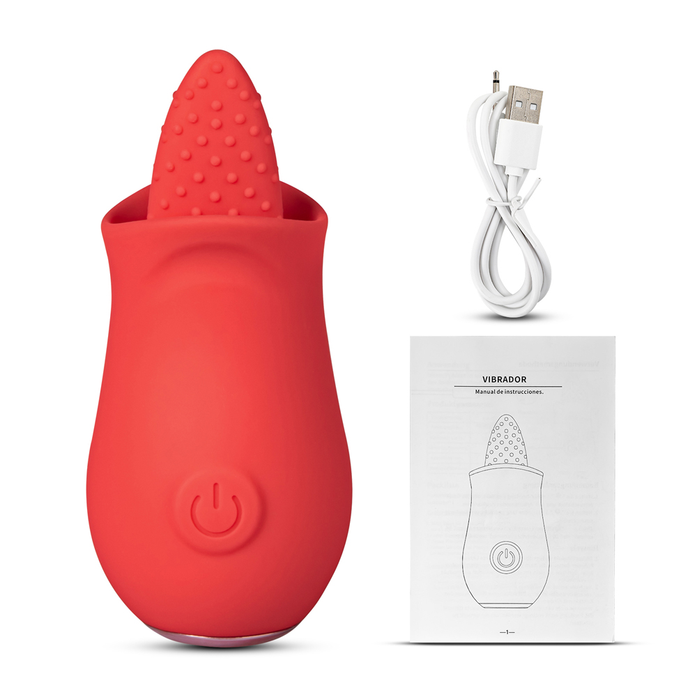 10 Speeds Red Color Silicone Flower Shape Massager with Tongue