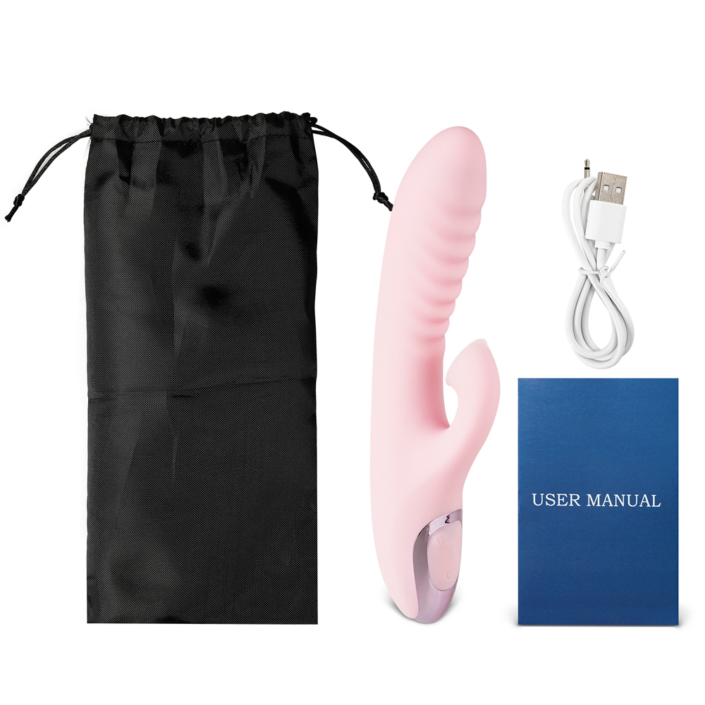 12-Speed Pink Color Silicone Rabbit Vibrator with Clitoral Sucking Stimulator