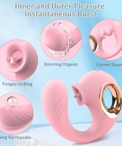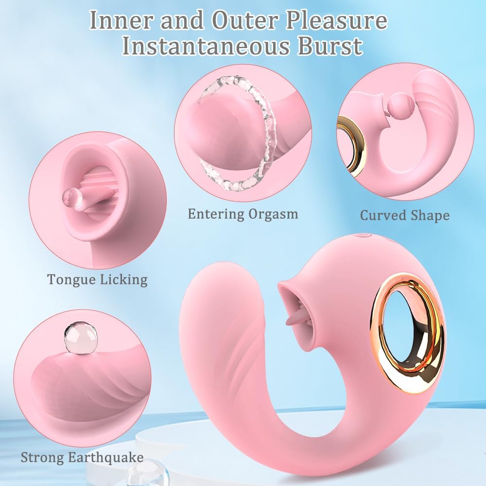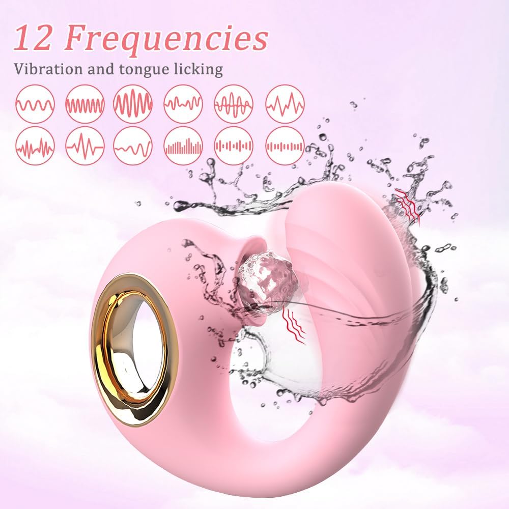 12-Speed Pink Silicone Rechargeable Massager with Vibrating and Tongue-Licking Functions