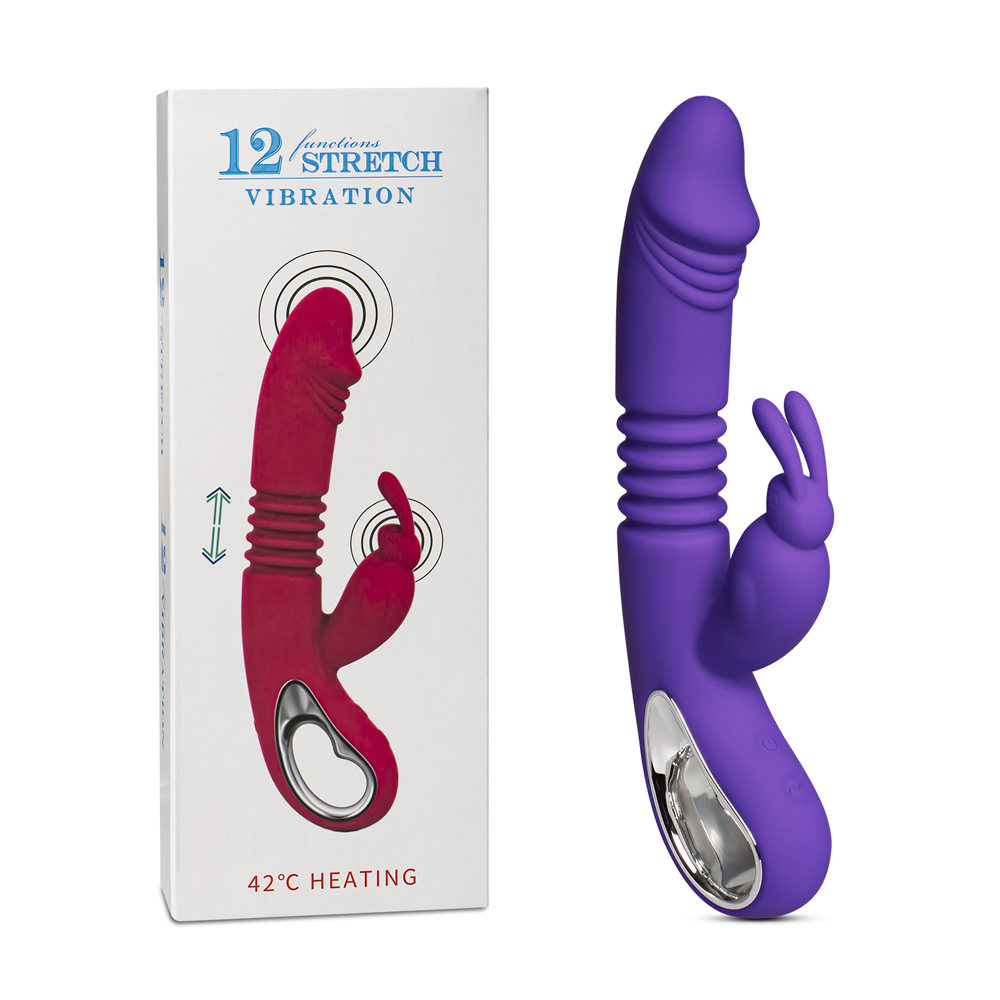 12-Speed Purple Color Silicone Thrusting Rabbit Vibrator with Heating Function