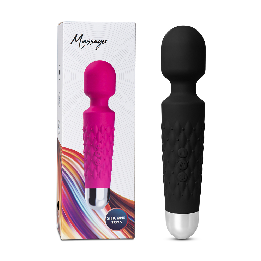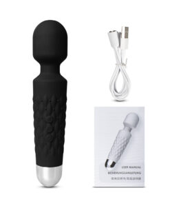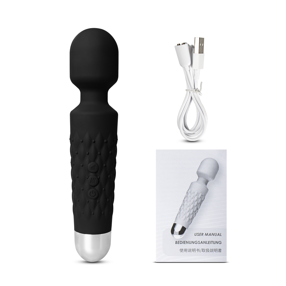 Black Color 9 Speeds Rechargeable Silicone Wand Massager