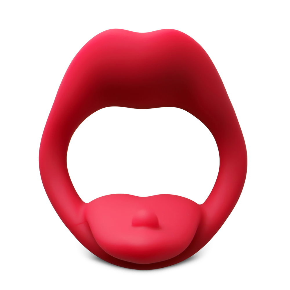 Mouth Shape with Tongue Red Vibrating Cock Ring with 9-Speed App-Controlled, Medical Grade Silicone, Waterproof, Rechargeable, USB Magnetic Charging