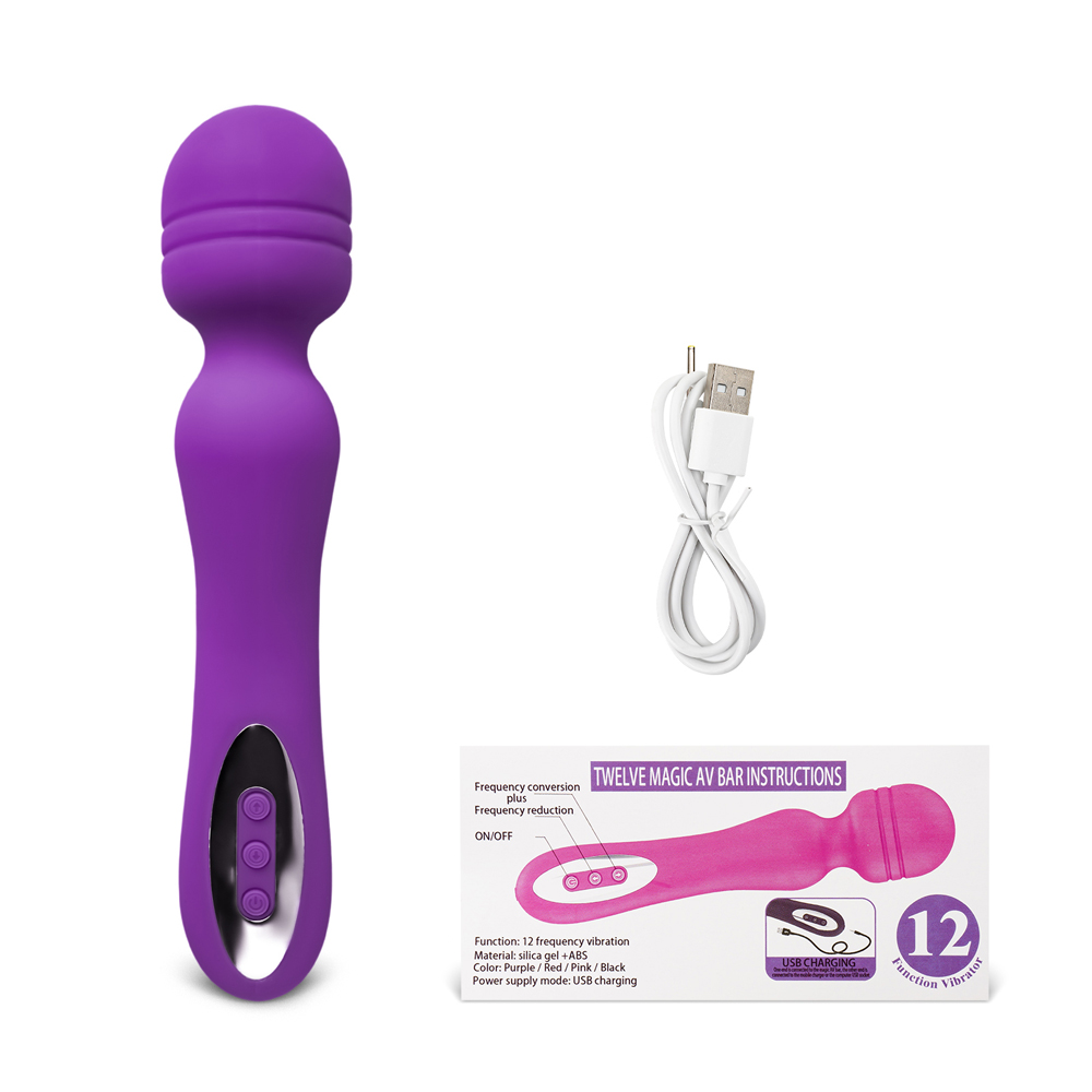 Purple Color 12-Speed Silicone Rechargeable Wand Massager (USB Recharging)