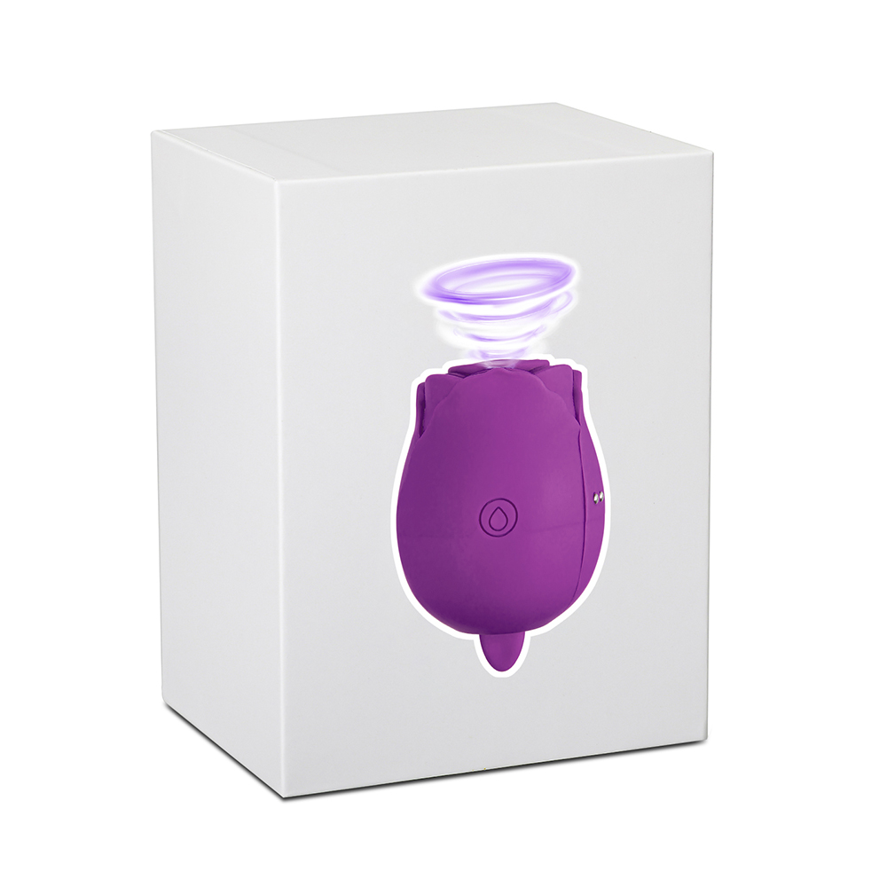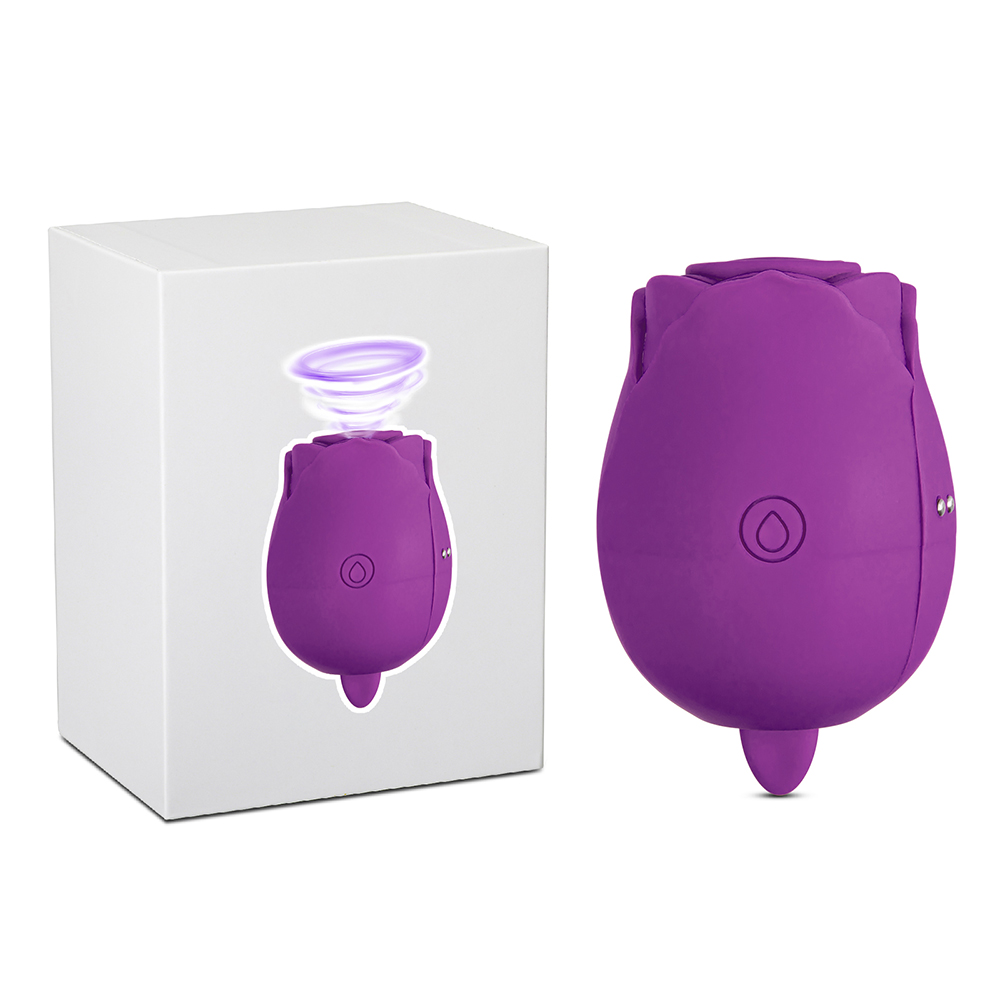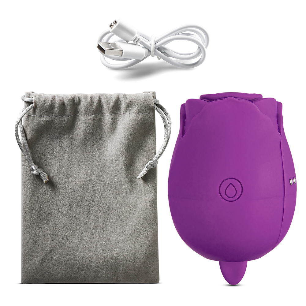 Purple Color 7-Function Silicone Clitoral Rose Sex Toy with Vibrating Tongue