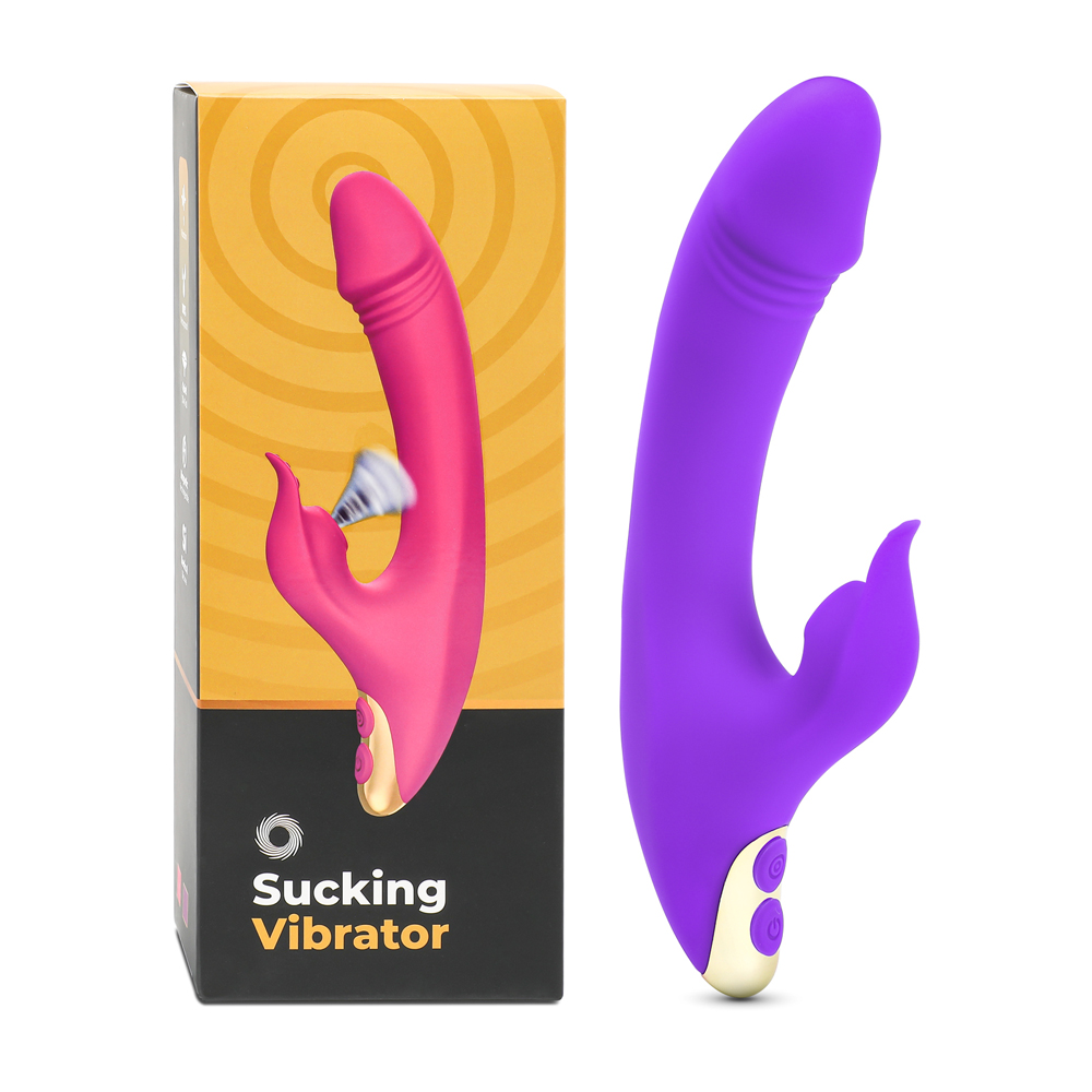 Purple Color 9 Speeds Rechargeable Silicone Penis Vibrator with Sucking Function